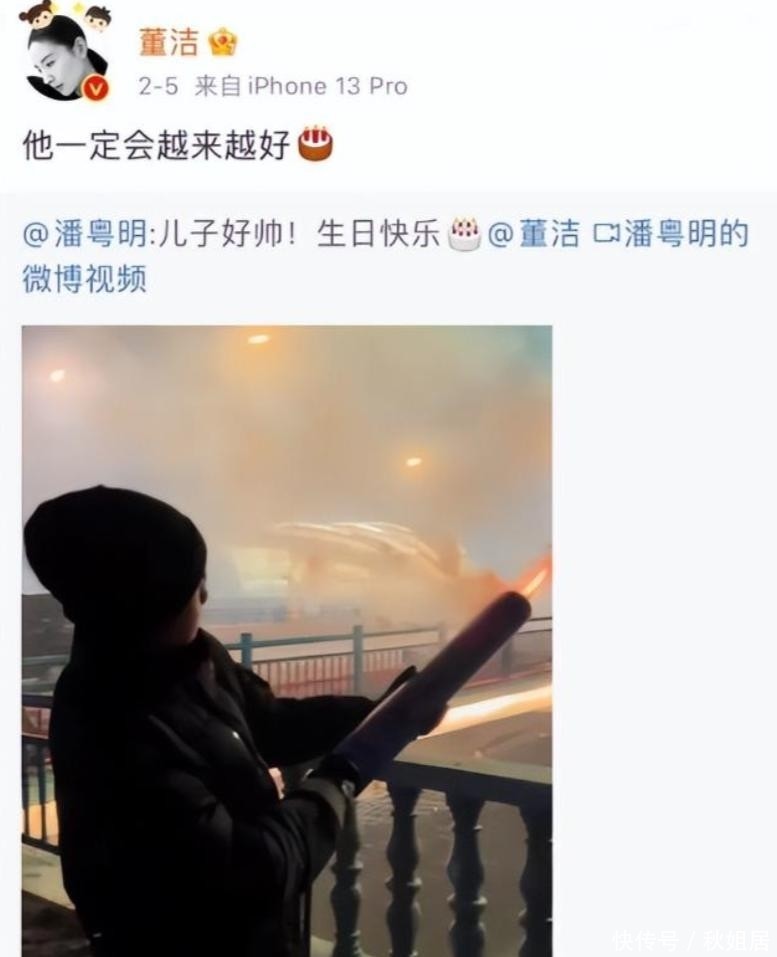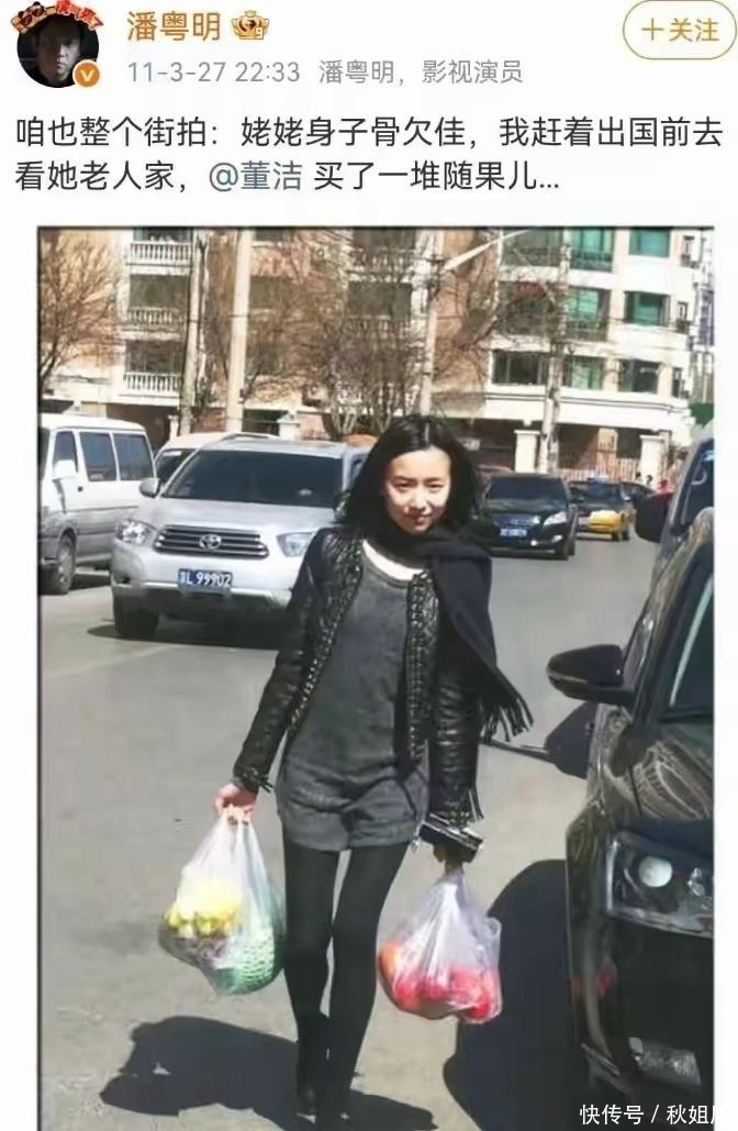 两东说念主因戏生情,低调完婚,育有一子顶顶。其时的潘粤明,把董洁视作掌心张含韵:她顺遂拎个苹果,他齐会肃肃晒到外交平台,配文尽是宠溺笑意。